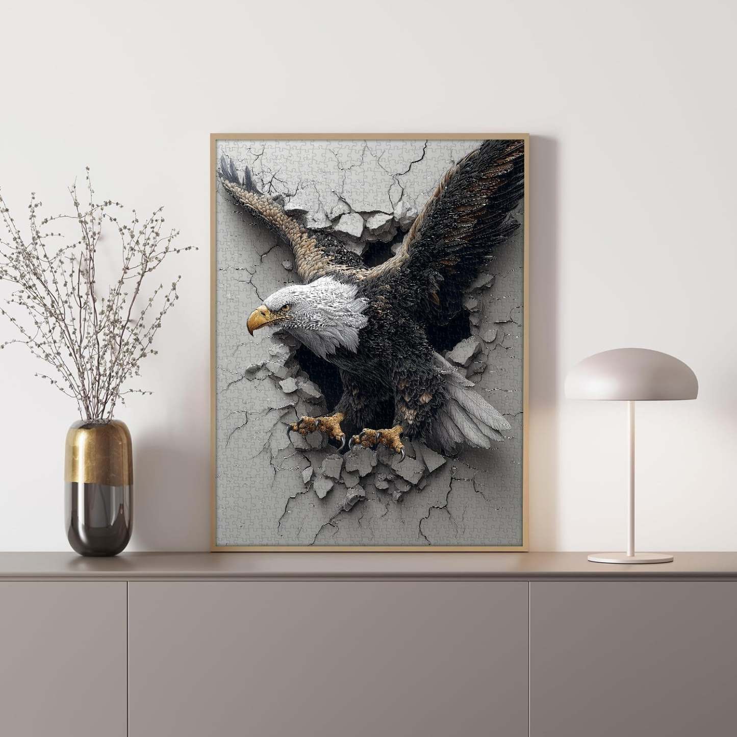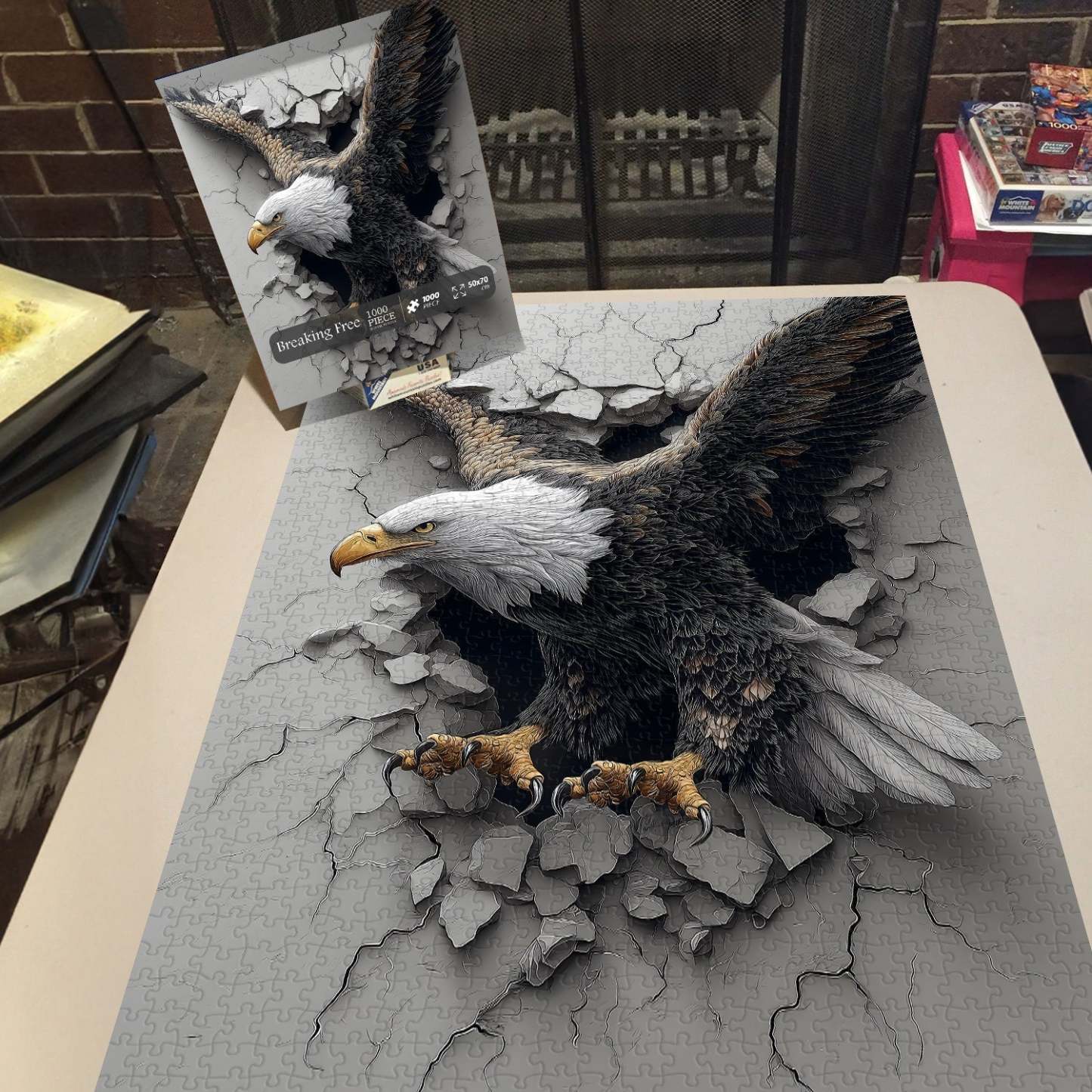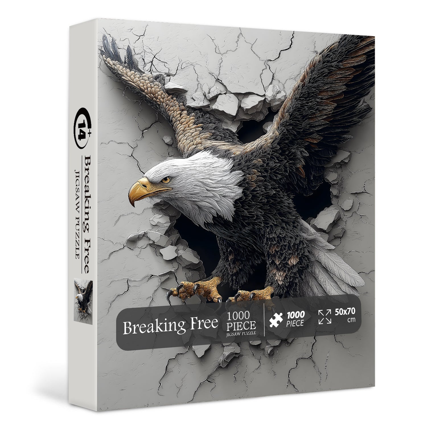 Symbolism & Mood: It conveys a sense of strength, freedom, and breakthrough, with the eagle’s forceful posture and the broken wall symbolizing overcoming obstacles and soaring above challenges.