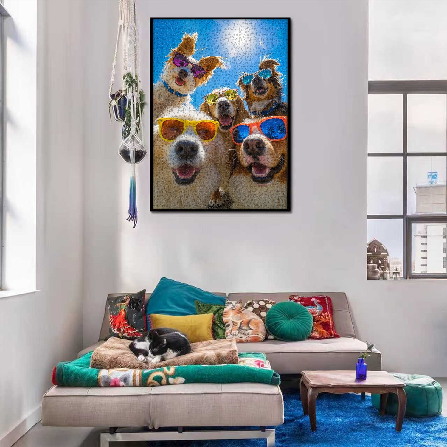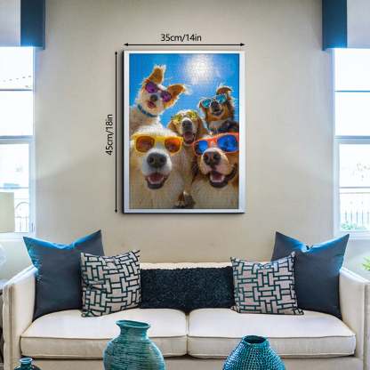 💖【Packaging and Dimensions】: This 1,000-piece Sunglasses Dog Paradise puzzle measures 14 x 18 inches. Once framed, it becomes a "mobile art exhibit" that will captivate your living room! Includes a high-definition reference poster for zoning, so even beginners can pinpoint every "artistic highlight"~