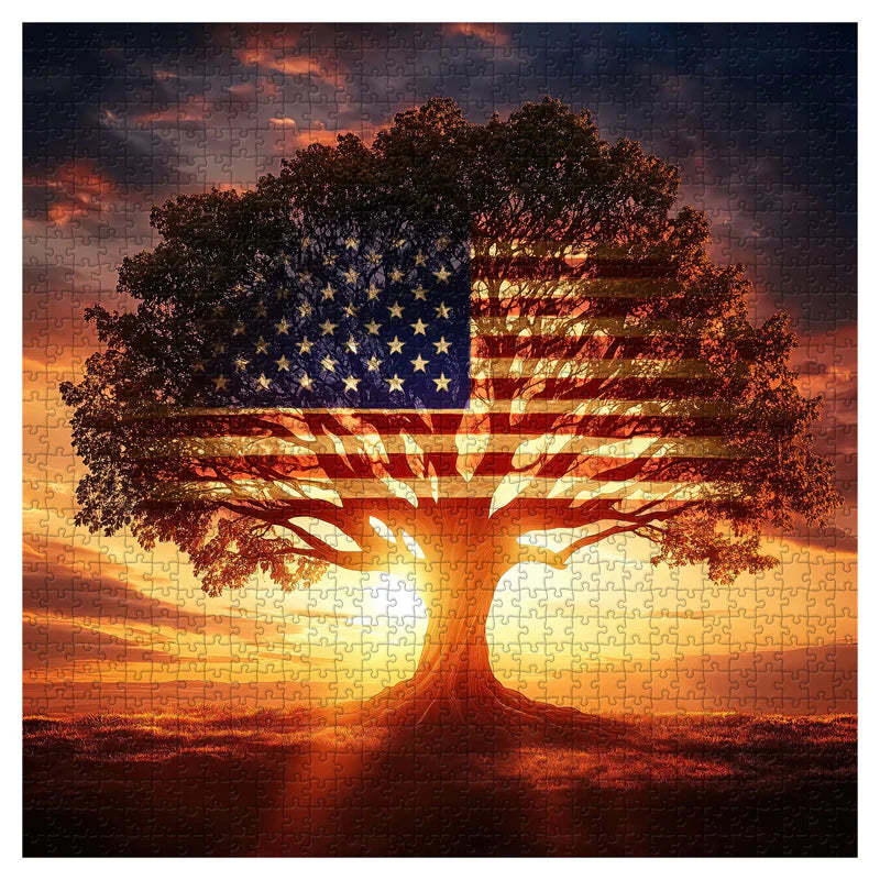 Sunset Glory: Step into a world where the tree of life dances like the American flag under a sunset sky canvas! 🌅🇺🇸 Let the magic of our Sunset Glory puzzle transport you to a realm where nature and patriotism intertwine in a breathtaking display of artistry and wonder.